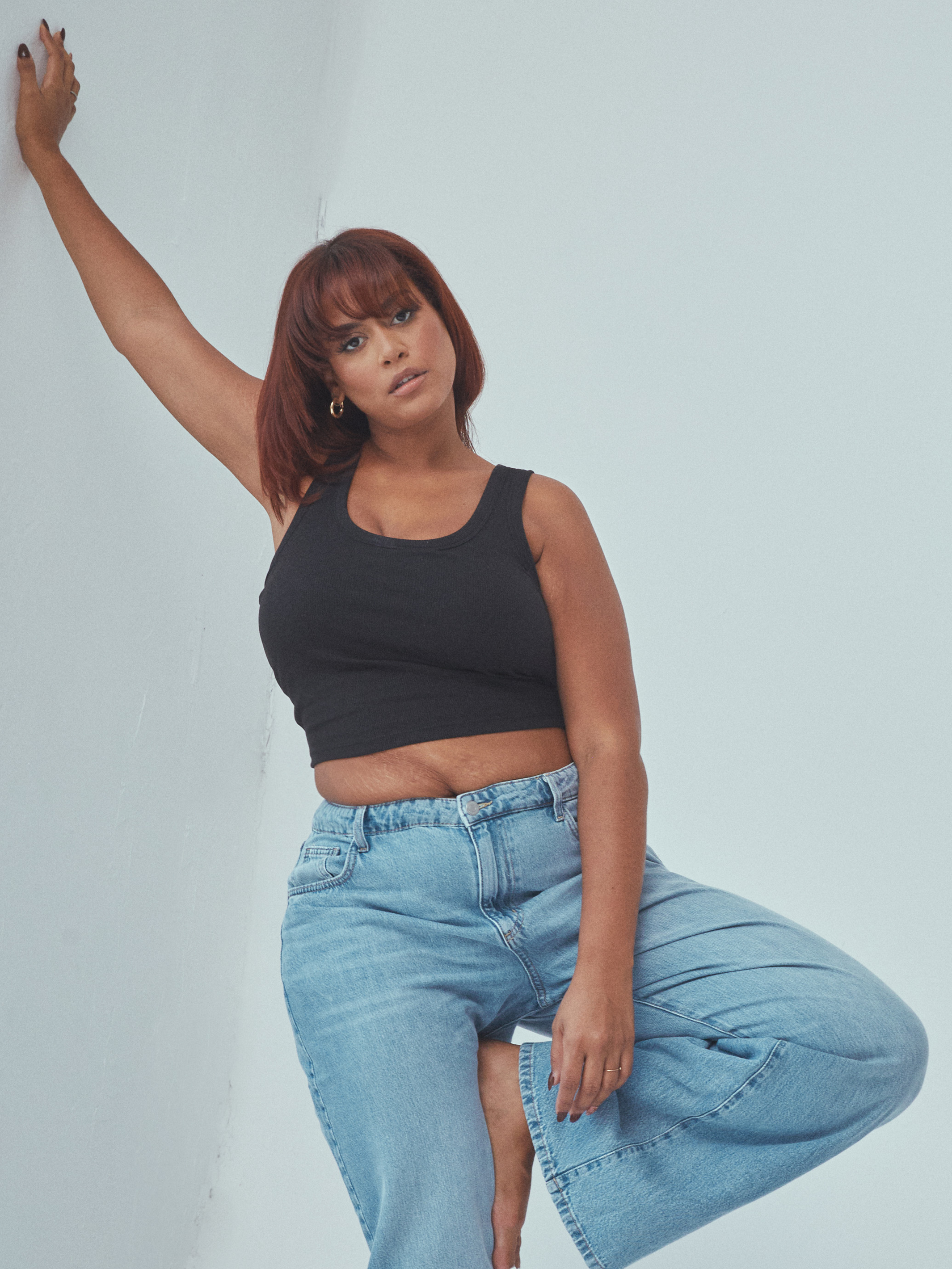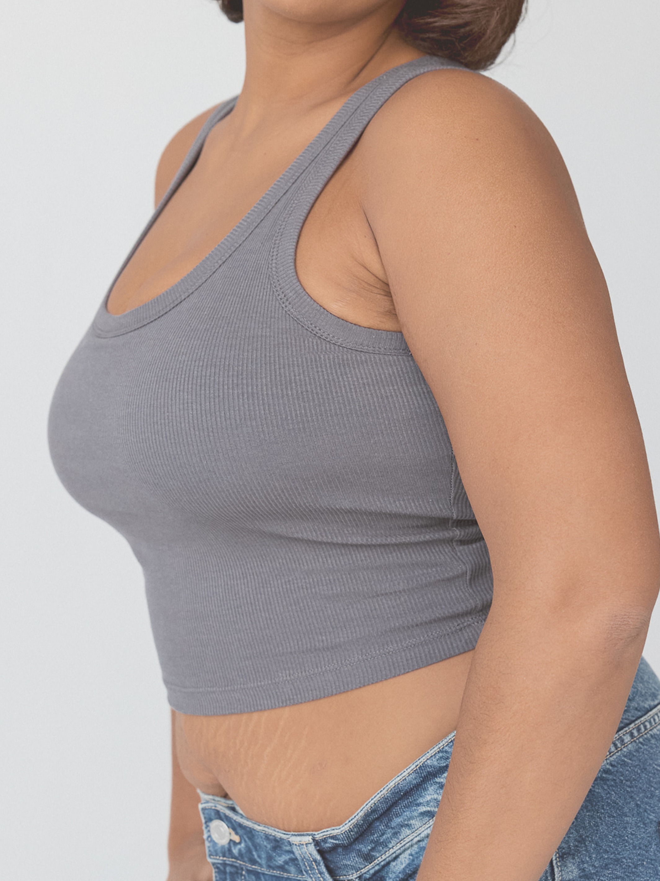 Details: Crop Length, Scoop Neckline, Ribbed Texture