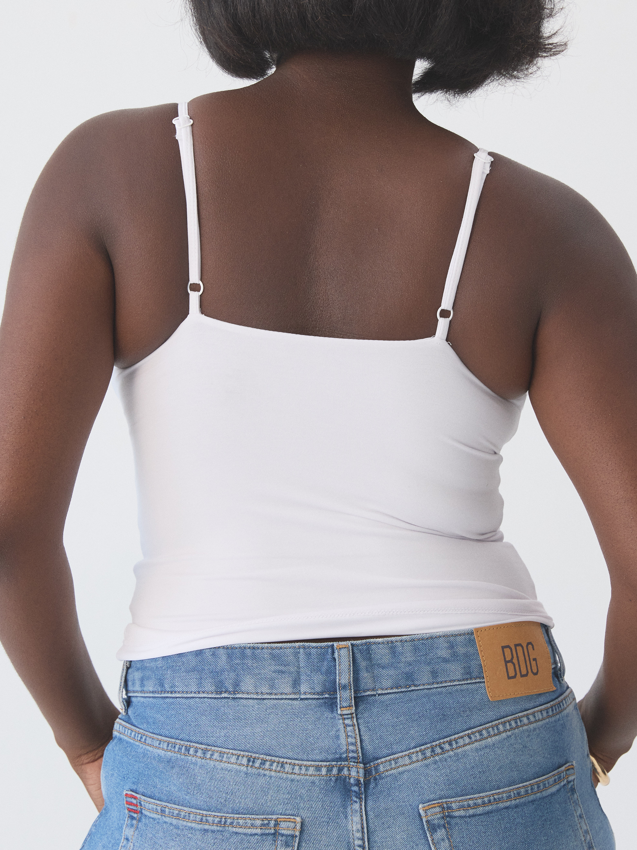 Meet your new romantic go-to. Our Solid Triangle Cami Tank is all about delicate details—adjustable straps, a plunging V-neckline, and subtle shaping that makes going braless look (and feel) next level. Designed with our band-less internal structure, bra straps are uncomfortable underwire are a thing of the past.