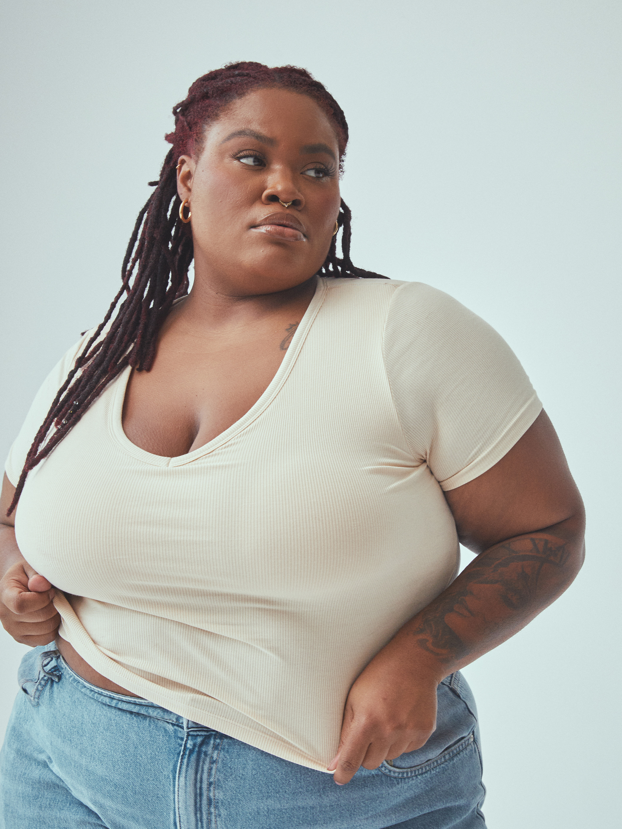 The updated essential you’re looking for- but with built-in padding. Our V-Neck T-Shirt Brami is a mid-length crop featuring a soft ribbed bamboo cotton blend, a classic V neckline, and a relaxed fit. Perfect for layering and styling for casual days out and even for the office. A V Neckline with no bra needed? Count us in.